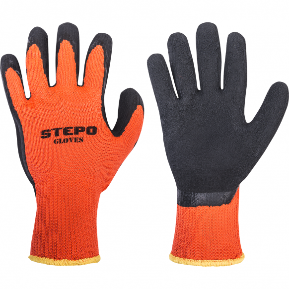 Apsauginės, žieminės darbo pirštinės aplietos lateksu (Juodai oranžinės) CE, LAHTI